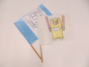 - ●A3程度の大きさの紙を使用し、棒を菜箸など長いものを使用して手旗を作るとより目立ちます!(その際は、紙を棒に巻き付けるための余白を残すと絵や文字のバランスが良くなります)