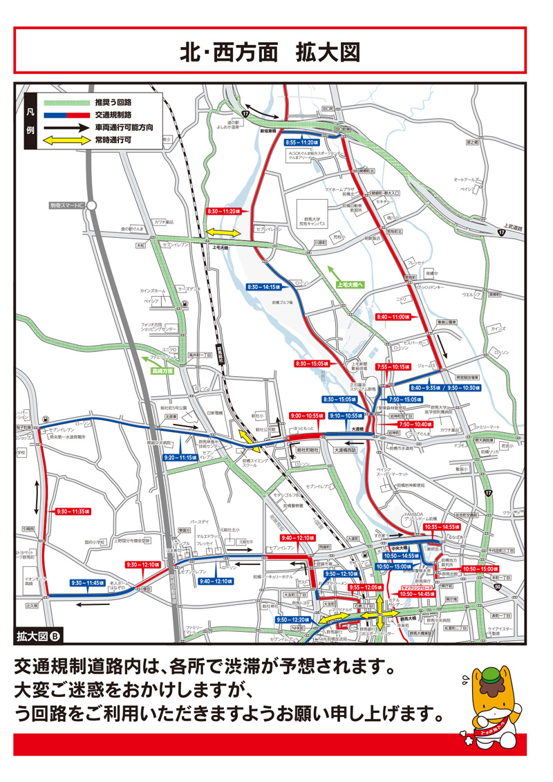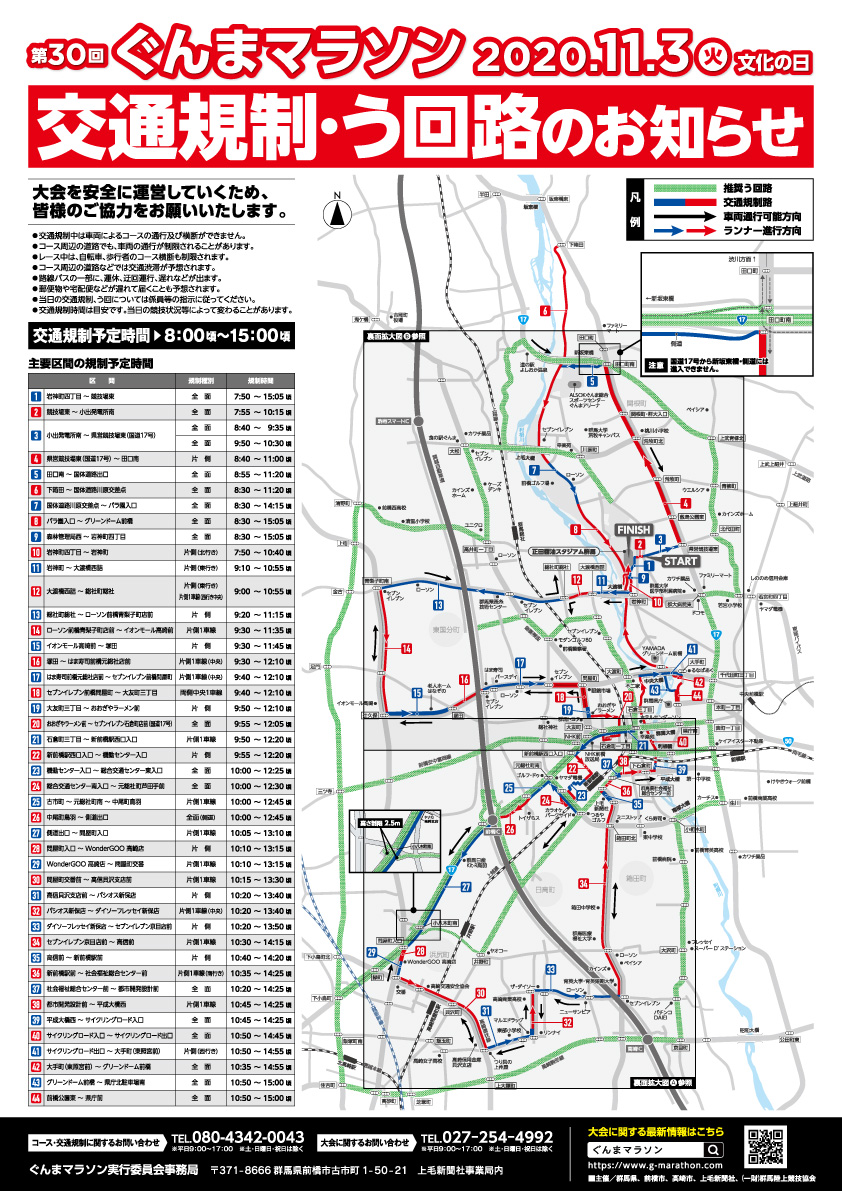 大会当日、前橋市・高崎市でランナーの通過に合わせて交通規制を行う予定です。